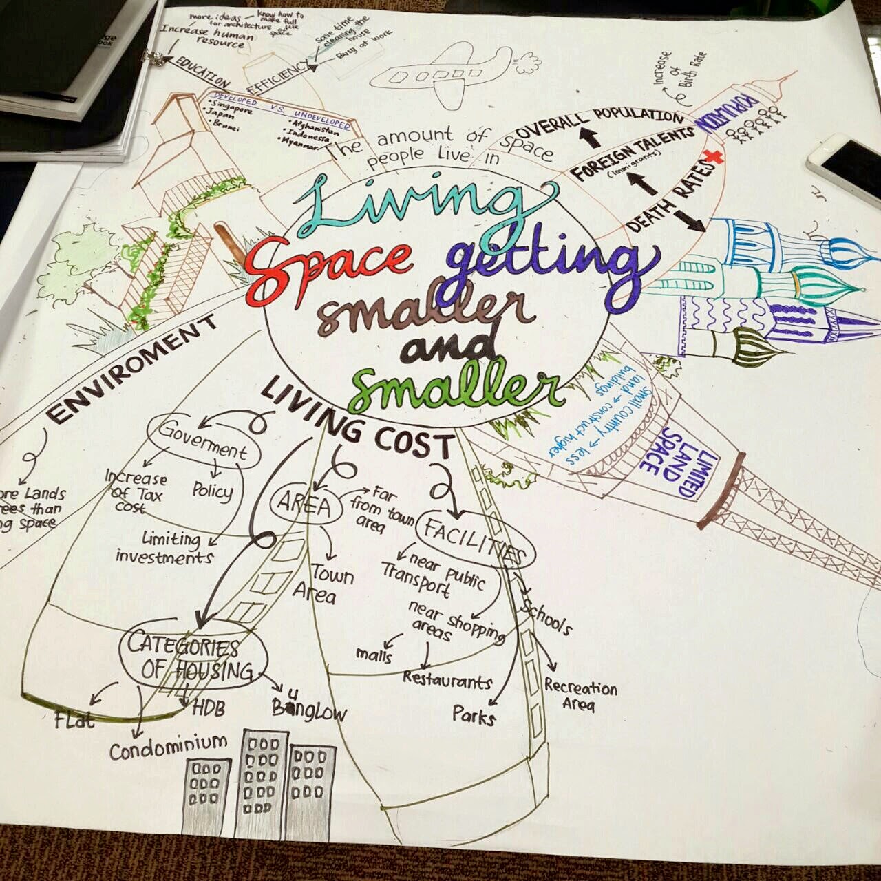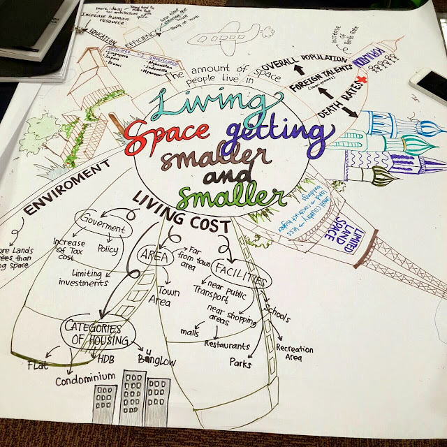 My group came out with a list of categories and factors that contributes to small living space. Some of these factors are "Developed and Undeveloped countries", "Population", "High Living Cost", "Environment-friendly" and "Limited Land Space". After coming out with these categories, we listed out more points and reasons under them. Through these reasons, we found out that these factors actually have links with each other. For example, there is increasing high population these years yet limited land space in Singapore, therefore, buildings have to be built higher and smaller living space in the compartment which in turn also lead to high living cost as lands get more expensive.